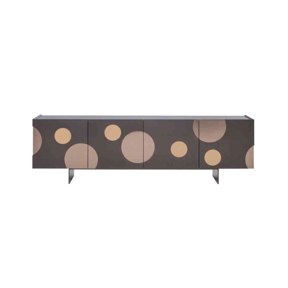 Kredens z lakierowanej płyty MDF z cofniętą dekoracją i efektem półprzezroczystości. Zabawna, ale elegancka mieszanka kolorów, która charakteryzuje Matisse.