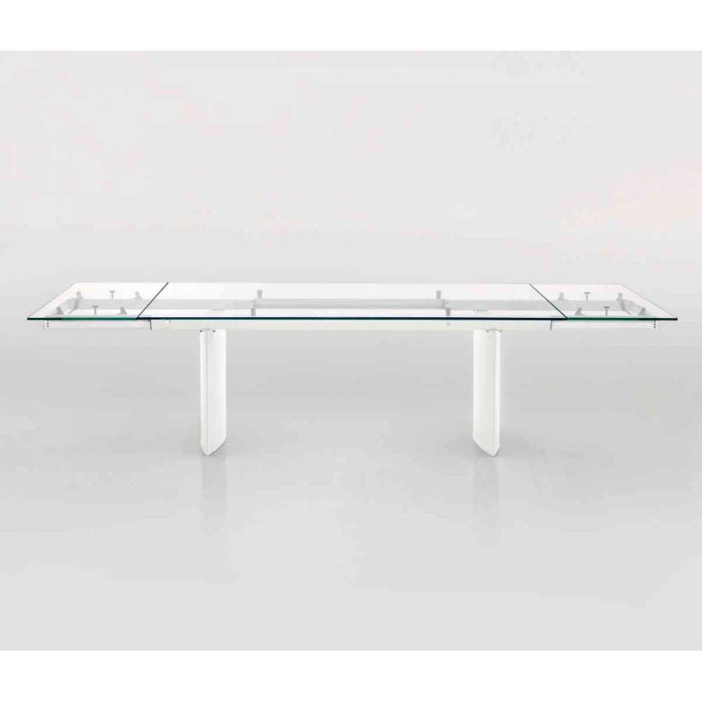 Stały lub rozkładany stół z aluminiowym mechanizmem prowadzącym, blat ze szkła hartowanego, drewna lub marmuru