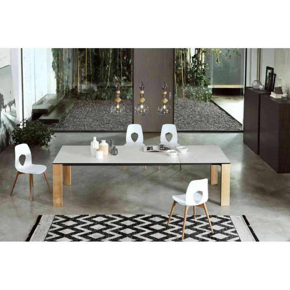 Konstrukcja Dada jest prosta i elegancka, z drewnianymi nogami wykonanymi z orzecha Canaletto, naturalnego dębu lub ciemnego dębu. Linie zakończone mocno elegancką geometrią, które wspierają laminowany lub ceramiczny blat - leżący na najbardziej wyrafinowanych aluminiowych przedłużeniach.