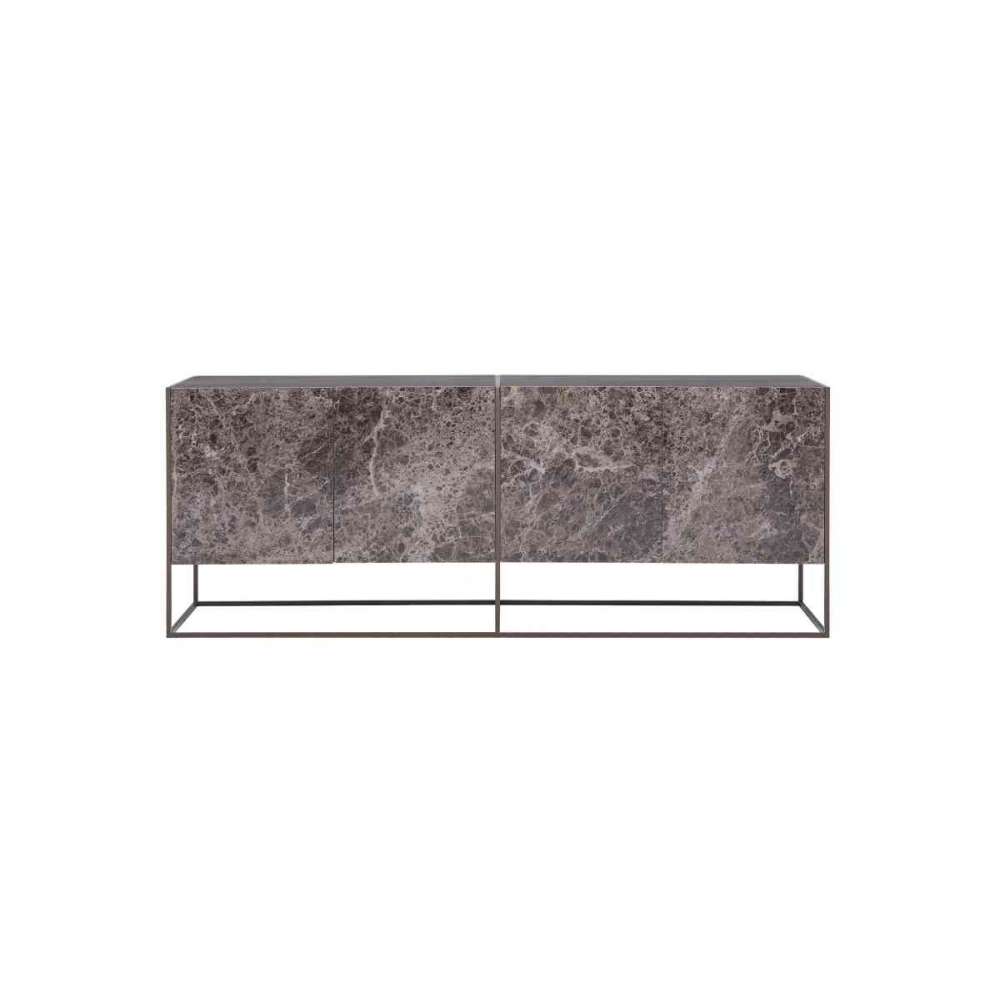Kredens z drzwiami na zawiasach z porcelanowej kamionki i strukturą z lakierowanego metalu.