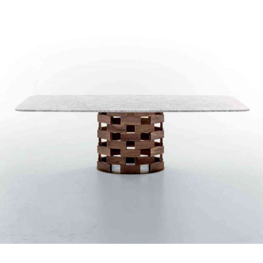 Kolejny hołd dla samych Włoch, w kształcie i odczuciu ciepła i równowagi. Podstawa z litego orzecha lub ciemnego dębu do podtrzymywania stałych lub wysuwanych blatów, wykonanych ze szkła, ceramiki i marmuru.