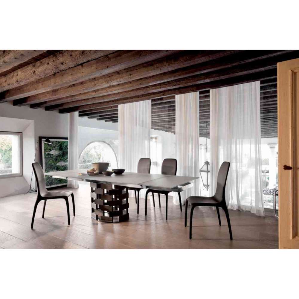Kolejny hołd dla samych Włoch, w kształcie i odczuciu ciepła i równowagi. Podstawa z litego orzecha lub ciemnego dębu do podtrzymywania stałych lub wysuwanych blatów, wykonanych ze szkła, ceramiki i marmuru.