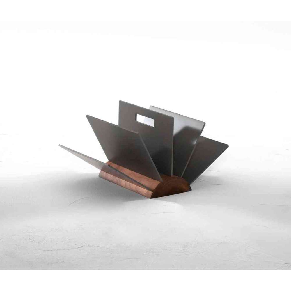 Stojak na czasopisma: orzech Canaletto, jasny dąb, podstawa z ciemnego dębu