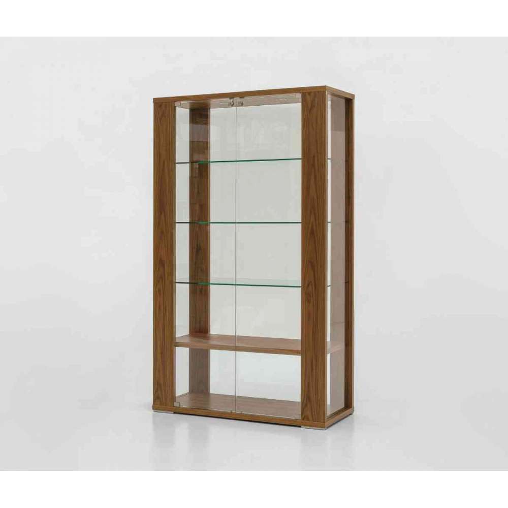 Witryna z 2 drzwiami z orzecha canaletto z drzwiami i półkami z przezroczystego szkła.