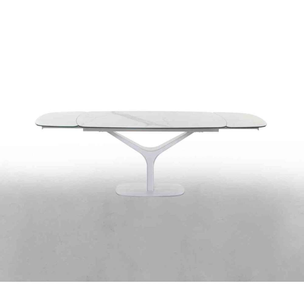 The New Contemporary: to najlepsza definicja nowego stołu Tonin Casa - Ariston. Twardość stali staje się tutaj miękka i zwinna, dzięki krzywiznom kształtującym podstawę tego stołu. Jej ceramiczne lub porcelanowe blaty - dostępne we wszystkich wykończeniach Tonin Casa - są bezpiecznie umieszczone na aluminiowych prowadnicach, łącząc elegancję i funkcjonalność.