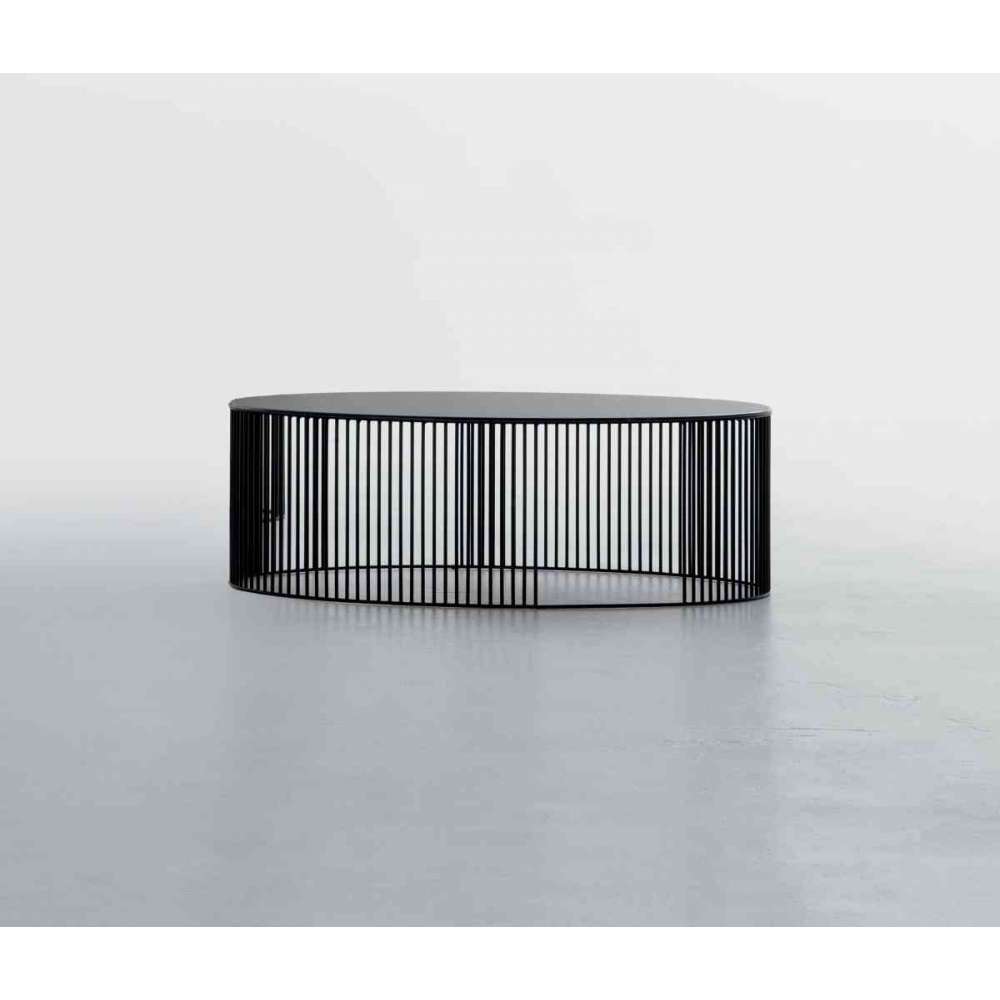 Kompozycja Andry została rozwinięta w pionowe linie i okrągły, lakierowany metalowy pręt jako pasek: może być biały, aby mocno błyszczeć, lub czarny, aby emanować elegancją. Metal konstrukcji zestawiony jest z hartowanym, matowym szklanym blatem. Kolor może być zarówno biały, jak i czarny. Fascynująca klatka, otwierana pośrodku, zamknięta i jednocześnie szeroka. Światło tworzy tu osobliwe efekty, przechodząc przez pionowe linie Andry i matowy, okrągły blat. Okrągły, bo projektant Tonin Casa nigdy nie pracuje tylko w jednym wymiarze.