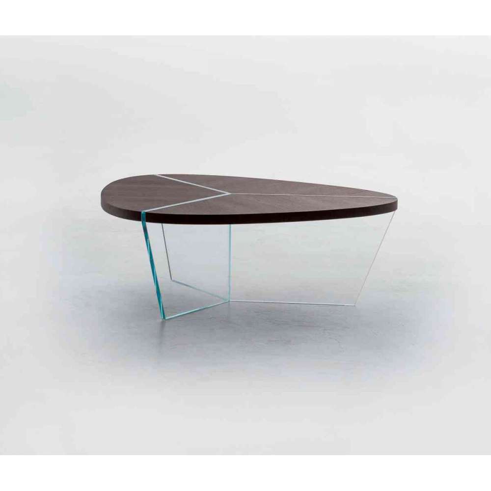 Spójrz na to z góry, a zobaczysz delikatny rysunek: trzy linie przesuwające się od środka do boków. Drewno doskonale wtapia się w szklaną podstawę. Po raz kolejny okazuje się, że techniczna precyzja ma fundamentalne znaczenie dla estetyki. Słoje drewna, cierpliwie uporządkowane, aby zrównoważyć znikające punkty szkła, uzupełniają Aidę, hołd złożony zarówno włoskiej kulturze, jak i materiałom. .