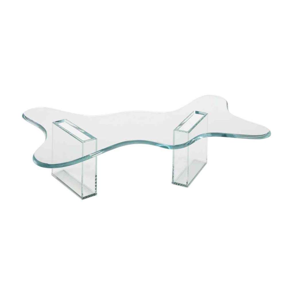 Seria małych stolików w dwóch wymiarach ze szklanym pudełkiem jako magazynkiem. Blat z wyjątkowo przezroczystego szkła o grubości 2 cm z zaokrągloną krawędzią. Pudełka dostępne ze szkła ekstra jasnego, dymionego lub lakierowanego na biało.