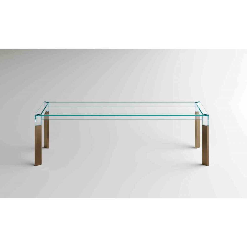 Klasyczny stół jadalny, w którym szkło i drewno wzajemnie się uzupełniają i wzmacniają.