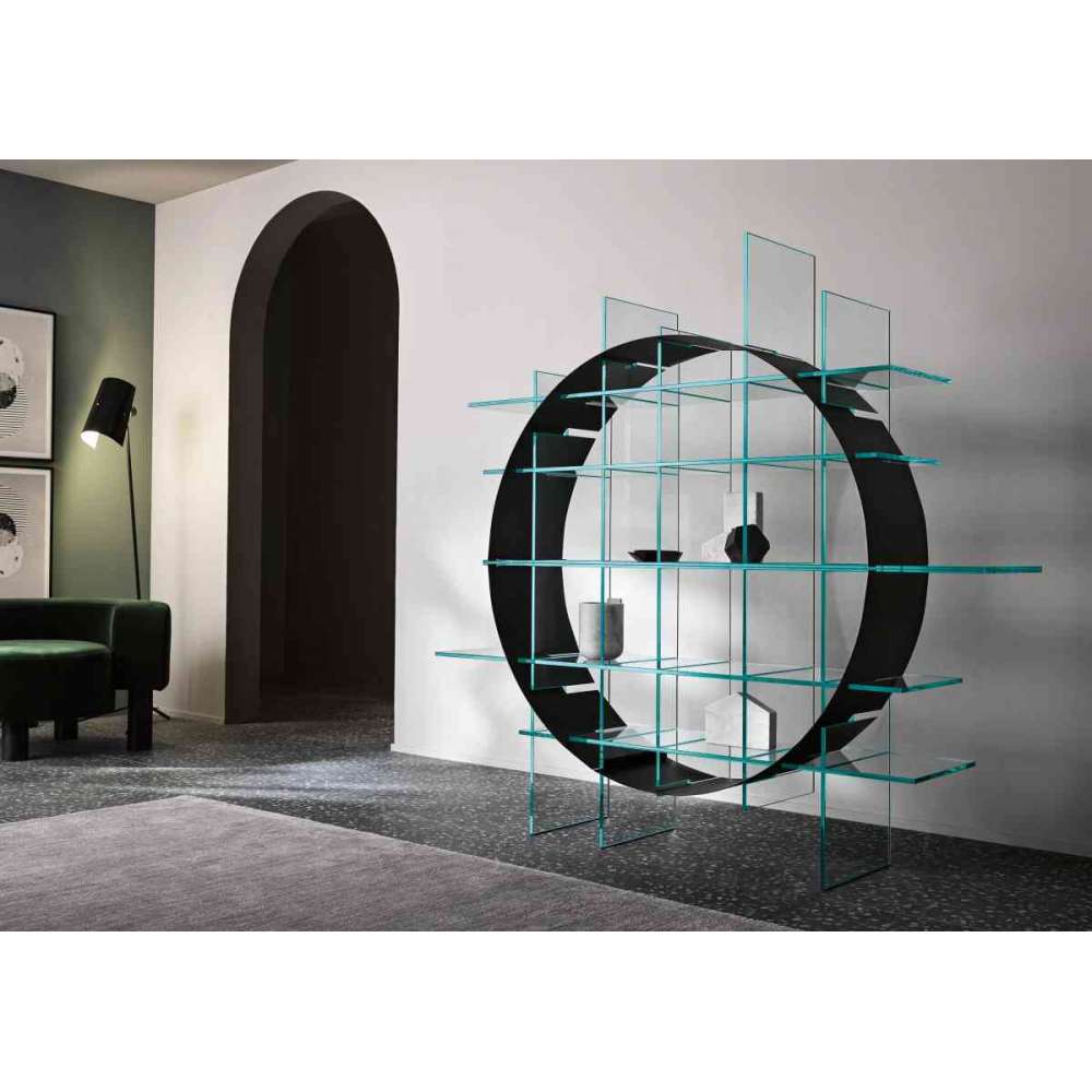 Duży wolnostojący regał o oryginalnej, nowoczesnej estetyce, zaprojektowany z myślą o klientach poszukujących funkcjonalnego mebla, który staje się centralnym punktem wnętrza. Konstrukcję stanowi centralna siatka szklana, klejona ręcznie przez wprawnych rzemieślników, oraz bezśrubowy element geometryczny wykonany z cienkiej blachy. Struktura występuje w dwóch kształtach – łukowatym lub zaokrąglonym – z kontrastowym wykończeniem dostępnym w szczotkowanym brązie lub w nowej szczotkowanej czarnej wersji. Ekstra przezroczyste lub przydymione szkło.