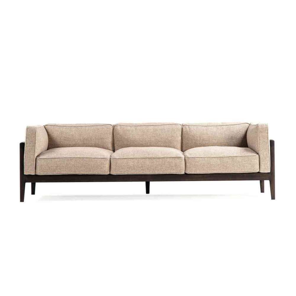 Ta sofa luksusowo łączy miękkie poduszki z ramą z płynnie połączonego rzeźbionego litego drewna. Poduszka z pierza zapewnia całkowity komfort siedzenia z głęboko opadającą miękkością. Poduszki oparcia, siedziska i podłokietników są mocowane, aby zapobiec ich zapadnięciu się