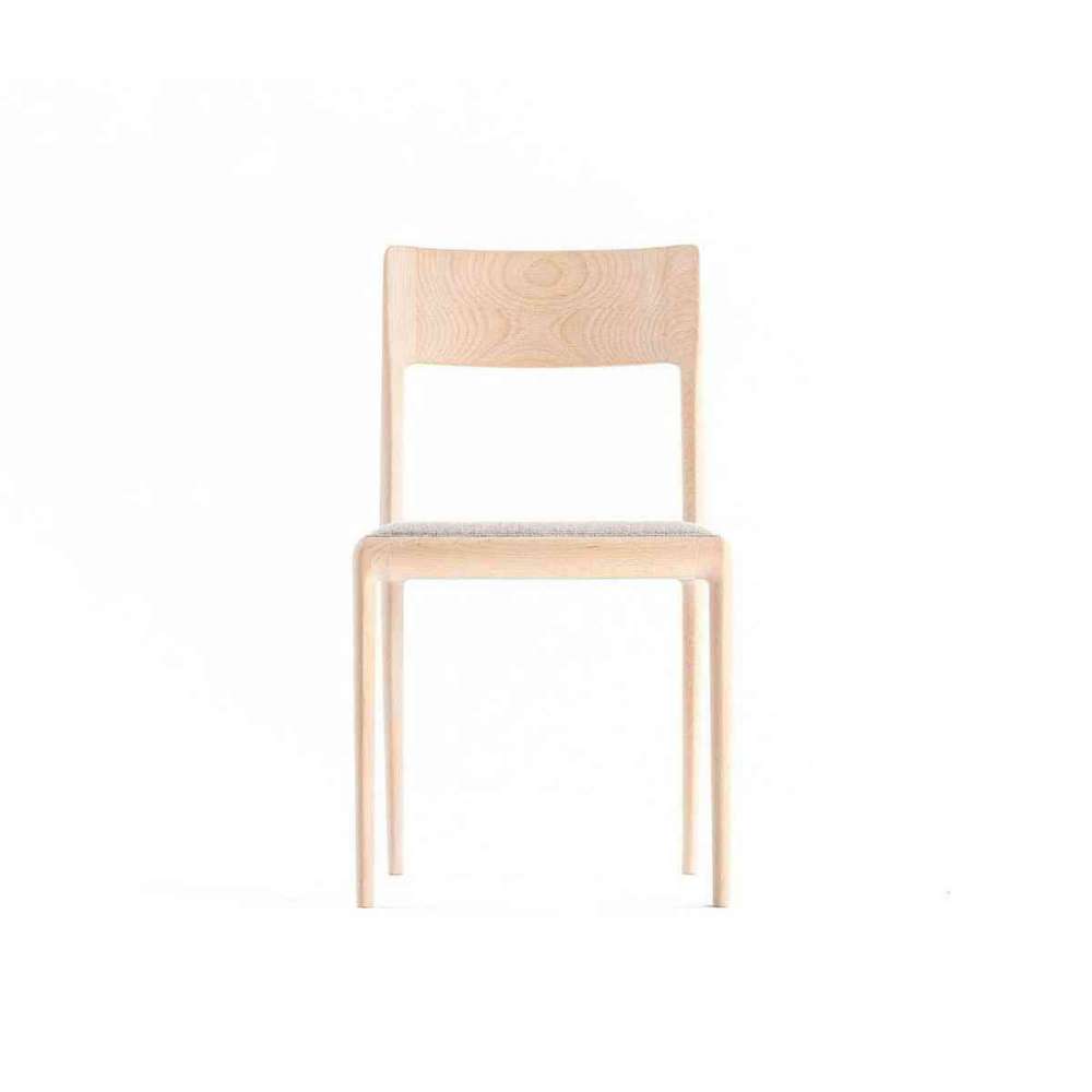 Prosta kompozycja tego bocznego krzesła przychodzi na myśl, gdy wyobrażamy sobie najbardziej standardowe krzesło. Starannie wyrzeźbiona z litego drewna, gładka zakrzywiona powierzchnia łączy całą ramę. Cienko wyprofilowane oparcie i nogi o owalnym przekroju łączą się poprzez naturalne krzywizny zachowując przy tym ostrość. Uważamy, że jest to rzadki rodzaj produktu, który realizuje wyrafinowane umiejętności potrzebne, aby nadać drewnu gładki i delikatny wyraz. .