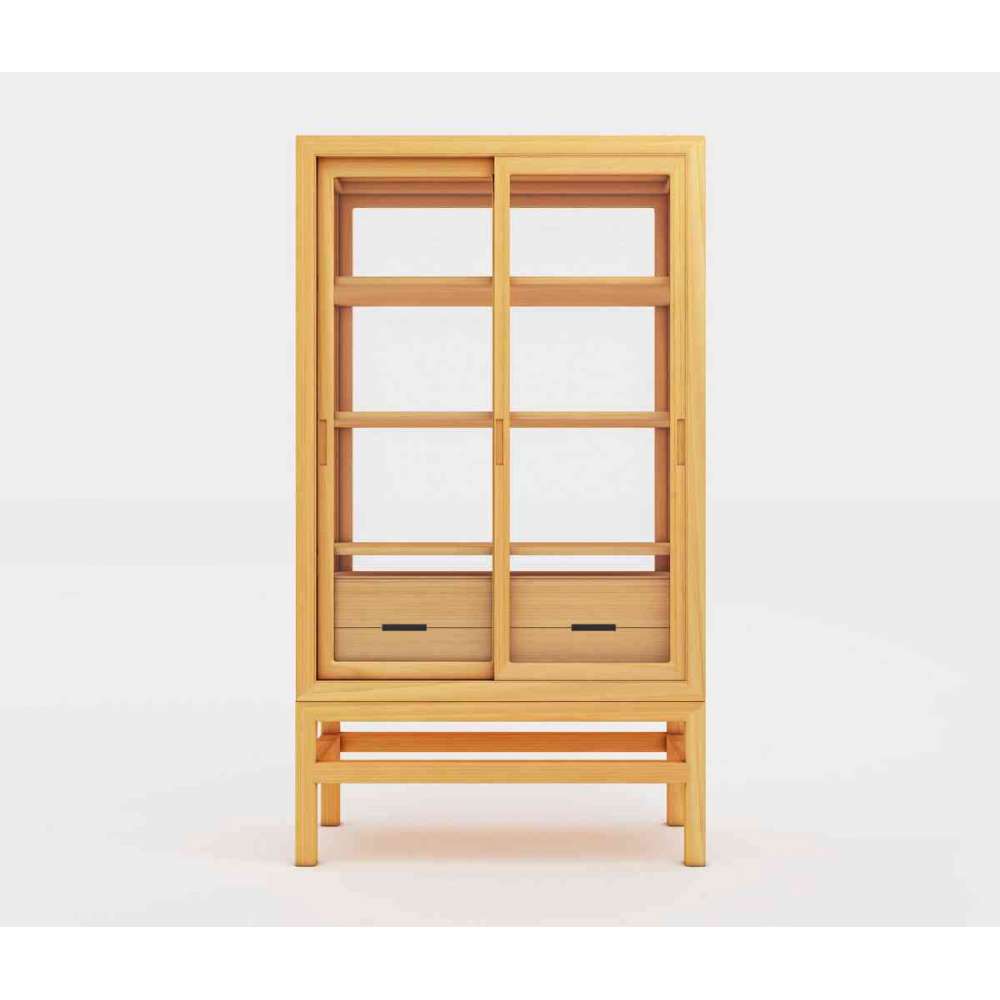 myślą o gablotach, które w najpiękniejszy sposób uzupełniają eksponowane kolekcje, jak gabloty w muzeach, ta przeszklona witryna została nazwana „gablotą muzealną do kolekcji prywatnej”. Naturalne światło wpadające przez szkło dociera do wszystkich zakamarków szafki, dzięki czemu przechowywane towary – takie jak zastawa stołowa, szklanki, pamiątki, wieloletnie kolekcje – wyglądają naturalnie. Zależało nam na stworzeniu szafy, która będzie uzupełnieniem przechowywanych kolekcji, a jednocześnie będzie trwała i funkcjonalna, pozwalająca na masowe przechowywanie ułożonej w stosy ciężkiej zastawy stołowej lub dużych zbiorów dzieł sztuki/fotografii (szafa może służyć jako wytrzymały regał na książki).