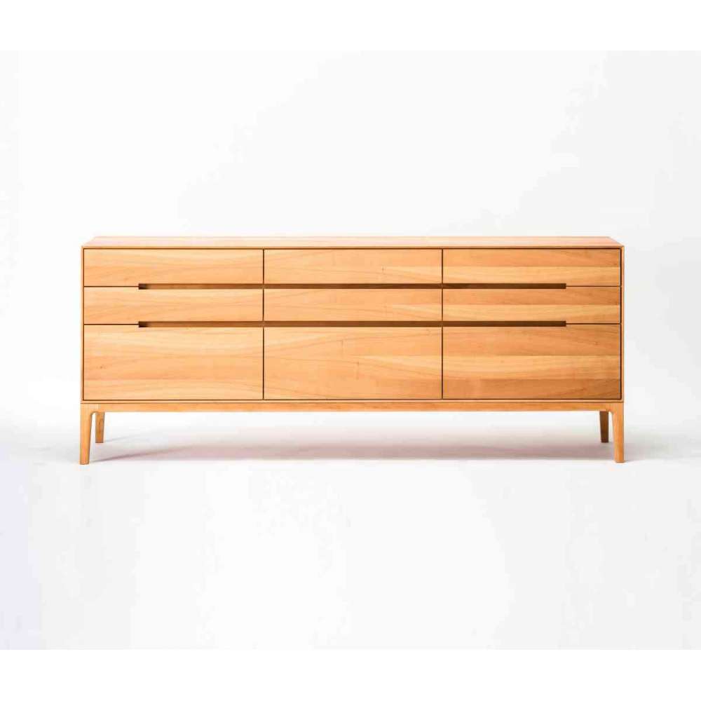 Cztery nogi podtrzymujące główny korpus są wykonane z tego samego materiału z litego drewna, co główny korpus. Aby cała szafka nie wyglądała na ciężką, jednocześnie eksponując fakturę drewna, wewnętrzne boki nóg zostały przetworzone w celu przedstawienia miękkich krzywizn, co nadaje szafce lekkości. Poziome uchwyty szafki, wykonane przez minimalnie wydrążone szczeliny, dodają szafce poprzecznie rozciągniętego wrażenia, gdzie projekt normalnie wyglądałby na ciężki ze względu na materiały, ale zamiast tego dają poczucie jedności i ciągłości szufladom szafki, gdzie wygląd inaczej byłby stereotypowy. Umieszczając szafki o tej samej wysokości obok siebie i dopasowując linie uchwytów, drzwi i szuflad, możesz pozwolić, aby różnorodna kombinacja zachowała ciągłość w jednolitym rytmie. Wrażenie tej szafki tworzą szczeliny, które zapewniają zarówno uchwyt, jak i dobry projekt z poczuciem przedłużenia, a także naturalną atmosferę materiału drzewnego. produkty. Wierzymy, że podstawą rzeczy są sześciany i kule, a sześciany zawierają uniwersalny punkt wyjścia dla każdego produktu. Nie bez powodu Ziemia i Księżyc są okrągłe. Konstrukcje takie jak domy i pudełka składają się z najprostszych sześcianów, i większe struktury są również wykonane z kompozycji sześciennej. Natomiast rośliny i zwierzęta, w tym ludzie, mają bardziej skomplikowane formy. Naczynia krwionośne w całym ludzkim ciele mają struktury i funkcje umożliwiające płynny przepływ krwi.