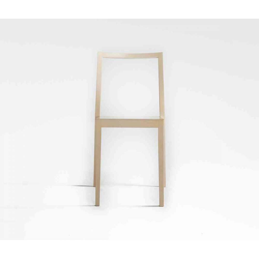 To proste krzesło jest uzupełnione obróbką drewna z siedziskiem wykonanym z drewna i oparciem utworzonym tylko z jednej listwy grzebieniowej. Mimo, że kompozycja jest niezwykle prosta, musieliśmy nadać jej funkcję układania w stos.