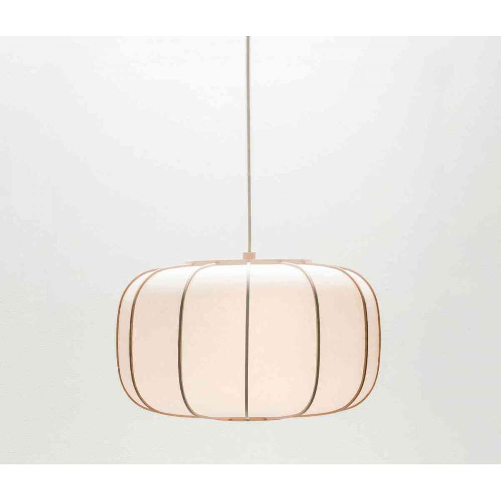 W ogólnym kształcie chcieliśmy zachować delikatny, okrągły kształt tradycyjnego oświetlenia bonbori, zachowując jednocześnie nowoczesną atmosferę bez mocnych japońskich elementów. Naszym celem było wprowadzenie do atmosfery japońskich i świeżych nowoczesnych elementów za pomocą światła przefiltrowanego przez japoński papier. W przypadku ramy cedrowej stworzyliśmy linię zakrzywionego drewna, która wygląda tak, jakby ramiona były lekko uniesione, dodając nowoczesny element do standardowego kształtu. Nawet z dodatkowymi elementami pozostaliśmy przywiązani do podstawowych materiałów i montażu, aby zapewnić ogólne wrażenie oświetlenia bonbori. To oświetlenie bonbori jest zbudowane z najcieńszej japońskiej ramy cedrowej w historii. Uważamy, że smukły materiał cedrowy nadaje oświetleniu delikatną atmosferę w całym zakresie. Ten Botan no Hana to zespół wyrafinowanych umiejętności i ducha stolarza sashimono, który pozwala podejmować nowe wyzwania wraz z pięknem papieru washi wykonanego dzięki oryginalnym dziełom rzemieślników z regionu Mino.
