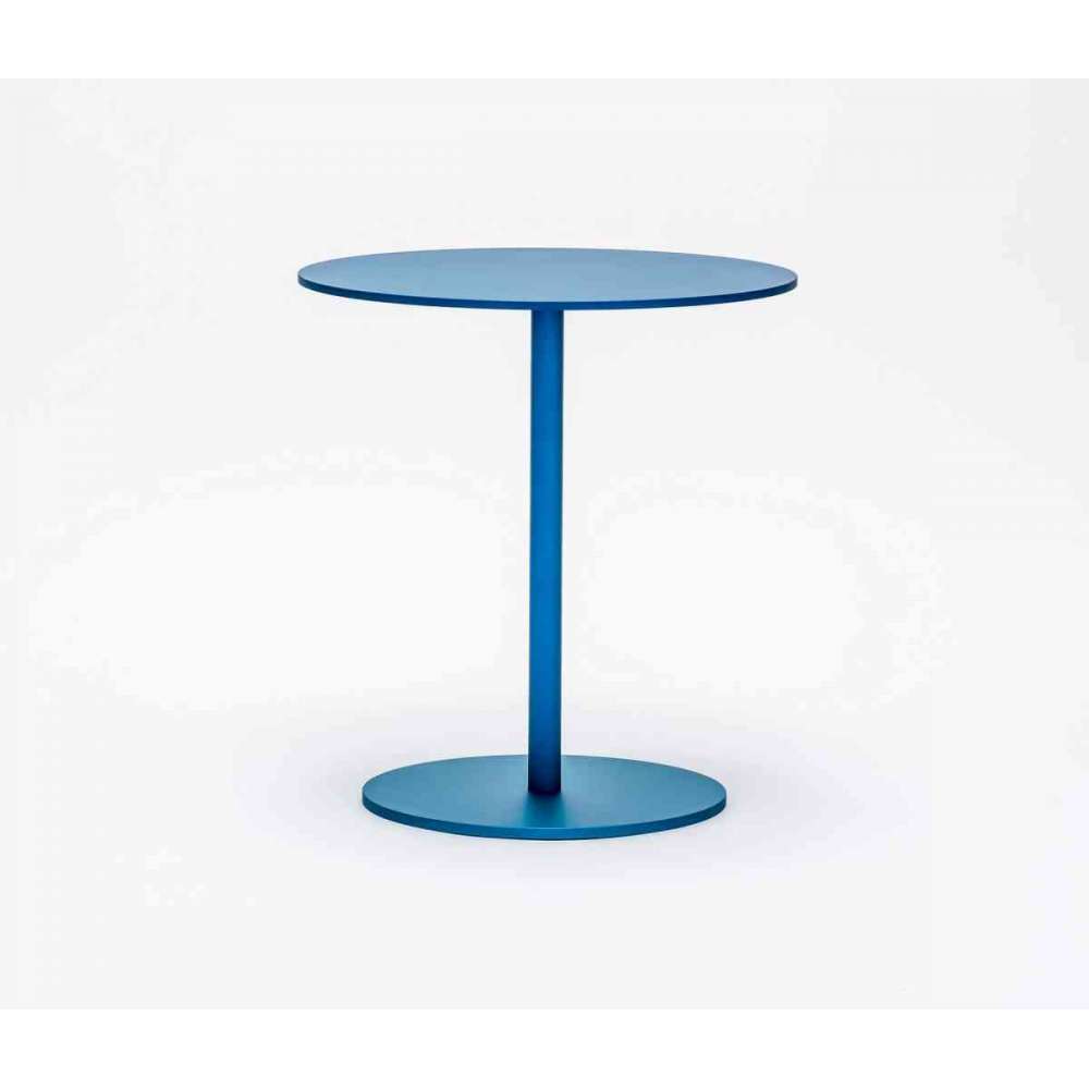 Ta technika przetwarzania pochodzi z Japonii i została wynaleziona przez naukowców z Instytutu Badań Fizycznych i Chemicznych w 1929 roku i została używany przez około 70 lat. W przypadku tych produktów stworzyliśmy projekt, który był ogólnie prosty i przyjęliśmy prostą konstrukcję, mocując solidne aluminiowe płyty na górze i na dole oraz solidny aluminiowy słup jako podporę, a następnie zmontowaliśmy za pomocą części łączących i śrub. Nadaliśmy stołowi nazwę „Niebieski w zieleni”. Czuliśmy, że połączenie kolorów niebieskiego i zielonego szczególnie dobrze pasuje do anodyzowanego aluminium. Jednak podczas próbnej produkcji odkryliśmy, że żółty, fioletowy i różowy również dobrze komponują się z aluminium. Dlatego stworzyliśmy produkty w dziewięciu kolorach.