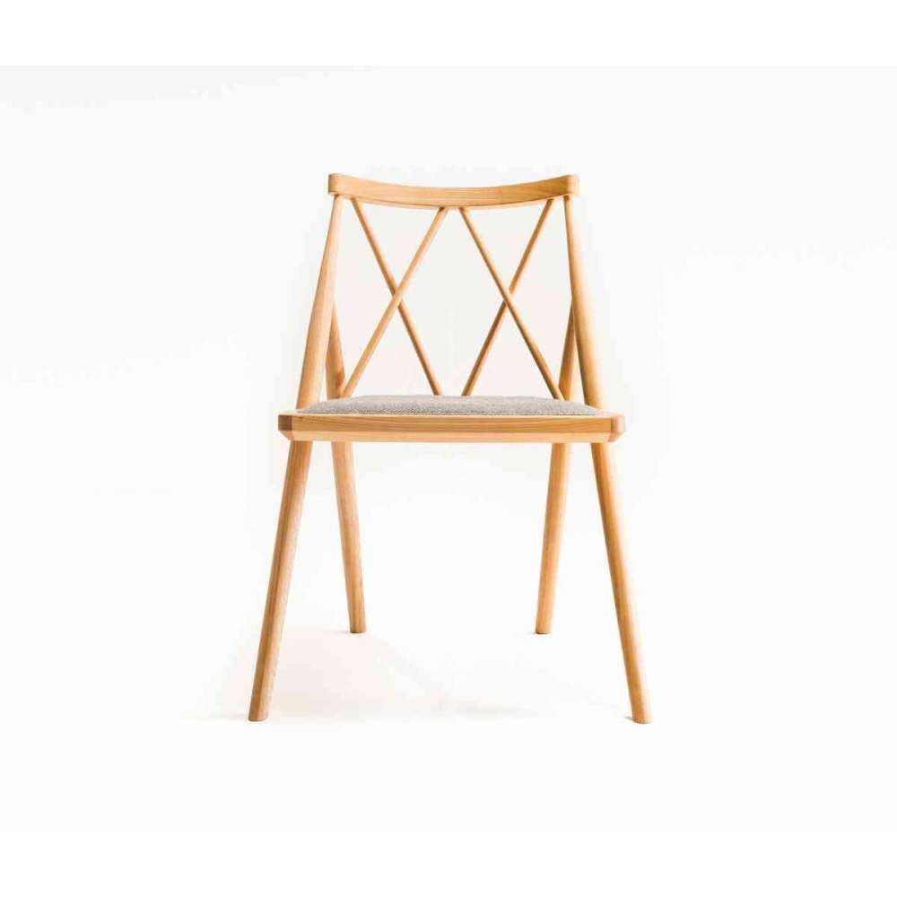 Konstrukcja została zaprojektowana tak, aby zachować wytrzymałość przy minimalnej liczbie części. Argyle wzór oparcia wykonany przez połączenie szprych w kształcie odwróconej litery „v” daje lekkie i graficzne wrażenie. Może wydawać się, że zapewnia swobodne wrażenia podczas siedzenia, ale w rzeczywistości szprychy ułożone w trzech wymiarach miękko otaczają plecy i podtrzymują ciało. Ponadto naszym celem było uzyskanie lekkości jako jednej z funkcji oprócz komfortu siedzenia krzesła. Siedzisko krzesła Windsor nieuchronnie staje się ciężkie, ponieważ jedną z jego cech jest użycie golonego litego drewna na siedzisko. Osiągnęliśmy oszczędność masy, przyjmując konstrukcję siedziska pokrytego tkaniną, a także można zapobiec wypaczaniu litego drewna z powodu odwodnienia. Odpowiednie właściwości amortyzujące również przyczyniają się do komfortowego siedzenia.