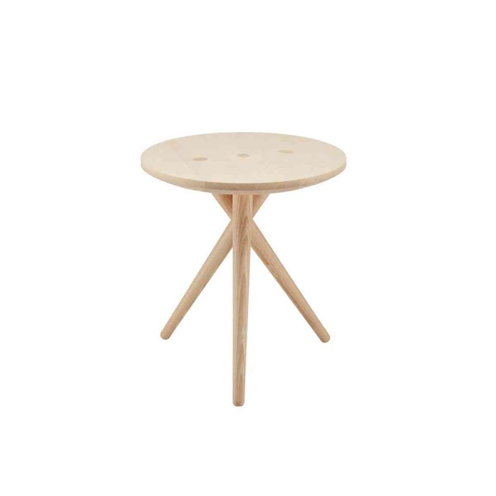 Stolik boczny 1025 o wysokości 48 cm i średnicy 45 cm jest dostępny w jesionie, dębie i orzechu.