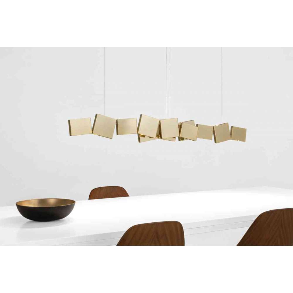 mitologii greckiej Gaja jest uosobieniem Ziemi i matką wszelkiego życia. Chcąc uchwycić mityczne i naturalne piękno tej bogini Ziemi, projektant Jean-François Crochet stworzył lampę wiszącą Gaia. Składająca się z geometrycznych ram z mosiądzu lub surowego metalu, przypominająca góry stworzone przez Gaię, lampa wisząca wykorzystuje światło ledowe do przepuszczania światła przez utworzone „pęknięcia”. Powstałe światło tworzy magiczne wrażenie, jakby przebijające się przez nie światła same były żywe. Dostępne w niestandardowych konfiguracjach, Gaia dodaje energii i świętego światła do każdej przestrzeni. Nowe wykończenie | Pozłacany