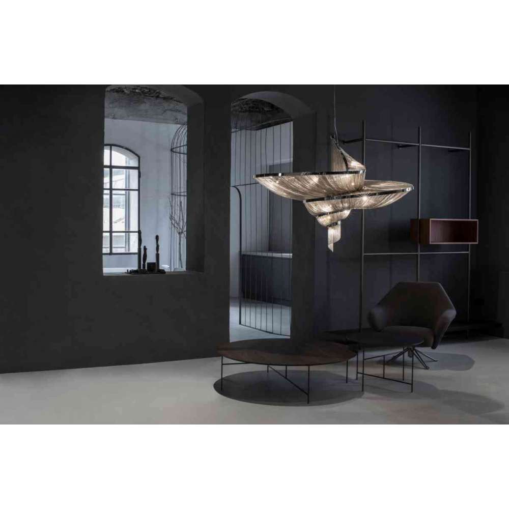Epoque to świetlna rzeźba przeznaczona do badania światłocienia i tomów. Rezultatem jest nowoczesna ekspresja tych technik z epoki renesansu w oszałamiającym żyrandolu. Złożona z zakrzywionych, organicznych linii rama Epoque jest wykonana z elastycznego i wytrzymałego mosiądzu, zawieszona na niklowych metalowych łańcuchach. Dwa metalowe paski, środkowy podłużny odcinek i zewnętrzny pas szerokich łuków, pozwalają światłu otoczyć pomieszczenie odbiciami miękkiego światła. Epoque przyciągnęła uwagę społeczności projektantów o wymagających gustach. Epoque jest dostępny w kolorze niklu, czarnego niklu, brązu i złota. Projekt Stefano Papi i Saviz Yaghmai.