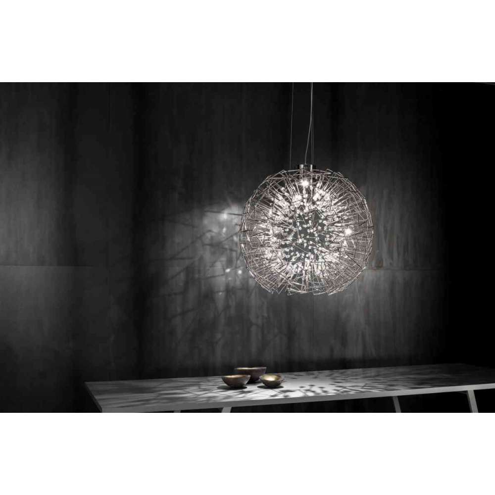 Core przypomina naturalną energię w sercu naszego świata. Niczym jasna lawa sącząca się przez skorupę ziemską, żywe kule fasetowanego kryształu przebijają się przez żelazną powierzchnię tego wisiorka. Zmuszanie światła do przejścia przez tę metalową konstrukcję skutkuje potężną, żywą wymianą sił światła i cienia, która wybucha w całym pomieszczeniu, gdy światło LED przenika, gdy samo światło emituje organiczny blask.