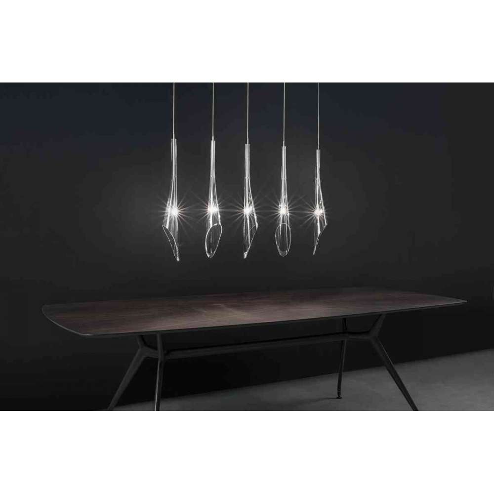 Terzani spędzamy niezliczone dni, szukając na całym świecie utalentowanych nowych projektantów, ale czasami to oni nas znajdują. Tak jest w przypadku młodych projektantów Luca Martorano i Mattii Albicini, którzy zwrócili się do nas z projektem Calle, fantastycznej nowej lampy, w której od razu się zakochaliśmy. Dzięki naszym umiejętnościom wytwarzania kryształów możemy przenieść materiał w ekscytujące, nowoczesne miejsce. Luca i Mattia współpracowali z naszymi rzemieślnikami, aby stworzyć smukły odwrócony flet o średnicy 70 cm/27,5 cala z 24% kryształu ołowiowego, który podobnie jak imitacja kalii można pogrupować w oszałamiające bukiety światła.