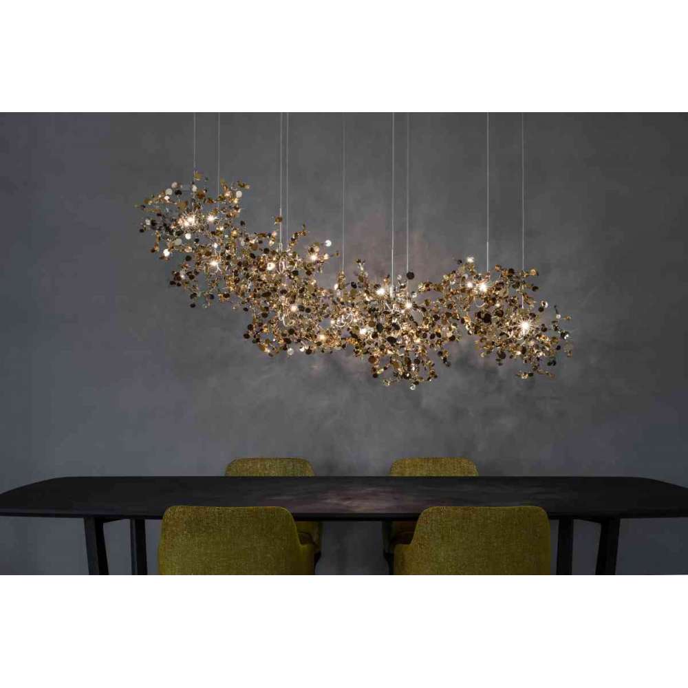 Lampa wisząca - Materiał STAL NIERDZEWNA - ZŁOTE WYKOŃCZENIE - Za pomocą tej lampy wiszącej projektant Dodo Arslan tworzy mieniącą się chmurę. Argent składa się z metalowych dysków, które zostały skrupulatnie ręcznie ukształtowane przez rzemieślników Terzani w klastry. Po zapaleniu wiele ustawionych pod kątem powierzchni dysków emanuje miękką, migoczącą poświatą. Argent jest dostępny w wersji ze stali nierdzewnej, pozłacanej, czarnego niklu, różowego złota i szampańskiego wykończenia. Projekt Dodo Arslan.