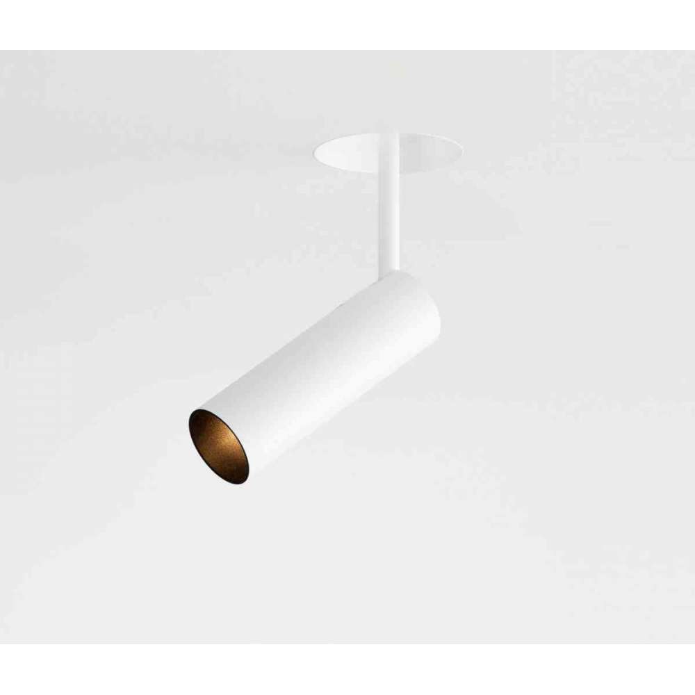 Regulowana oprawa kierunkowa do wbudowania bez wykończenia (zarówno do montażu w płycie gipsowo-kartonowej, jak i w suficie twardym). Widoczna, głęboko osadzona tuba, jednolita z krawędzią sufitu, w komplecie z Optic-Spot, regulowana osiowo od 0° do 90° - kierunkowa od 0° do 350°.