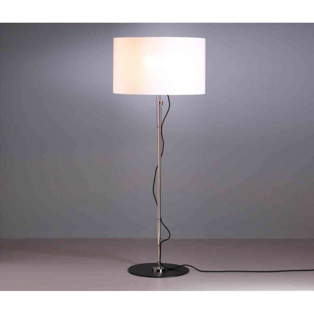 Materiał: mosiądz niklowany, podstawa 360 mm lub 400 mm, czarny lakierowany metal, klosz z tkaniny lnianej