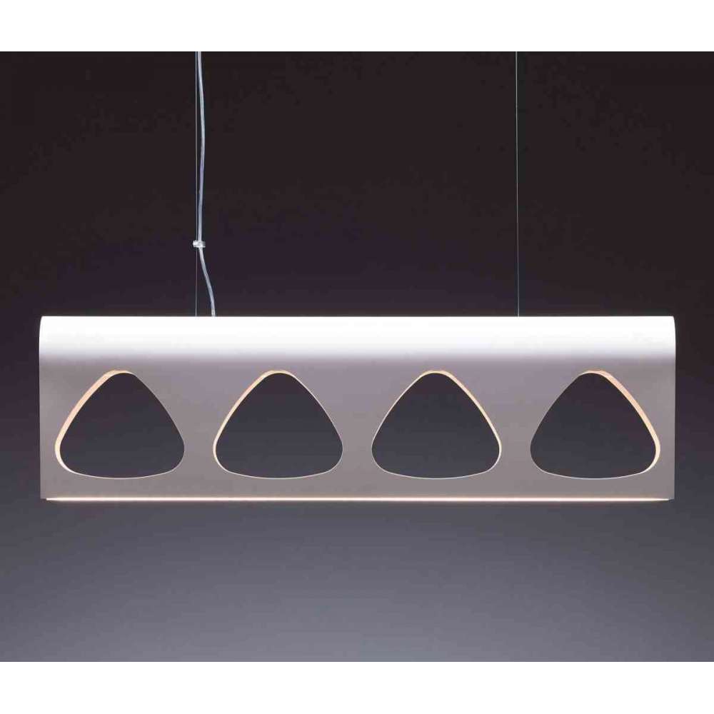 Oprawa zwieszana wykonana ze szkła akrylowego i stali nierdzewnej o organicznych kształtach wyfrezowanych z boku. Oprawa wyposażona jest w wysokiej jakości źródło światła LED oraz nieoślepiającą soczewkę kolimacyjną. Wewnętrzna obudowa jest oświetlona czterema diodami LED jako oświetlenie akcentujące. Wyposażona jest w wysokiej jakości lampę LED (Dim-to-warm) oraz nieoślepiający klosz dyfuzora. Możliwość ściemniania za pomocą uniwersalnych ściemniaczy ściennych lub podświetlanego przycisku (ON/OFF/DIM).