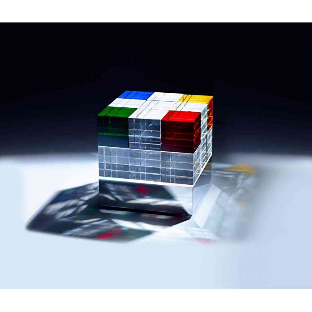 Ozdobny obiekt oświetleniowy „Cubelight” składa się z 18 kostek wykonanych z prawdziwego szkła. 14 przezroczystych kostek i jedna czerwona, jedna niebieska, jedna zielona i jedna żółta, można ułożyć w zależności od kreatywnego nastroju. Kostki o długości krawędzi 50 mm (możliwe są niewielkie różnice) po prostu umieszcza się na pokrywie obudowy i włącza się światło LED (16 W, 1260 lm, 2700 kelwinów). Przejrzysty język wzornictwa i podobieństwo do wzornictwa Bauhaus sprawiają, że ten piękny mebel ponadczasowo przyciąga wzrok na każdym stole, półce, barze, ladzie itp.