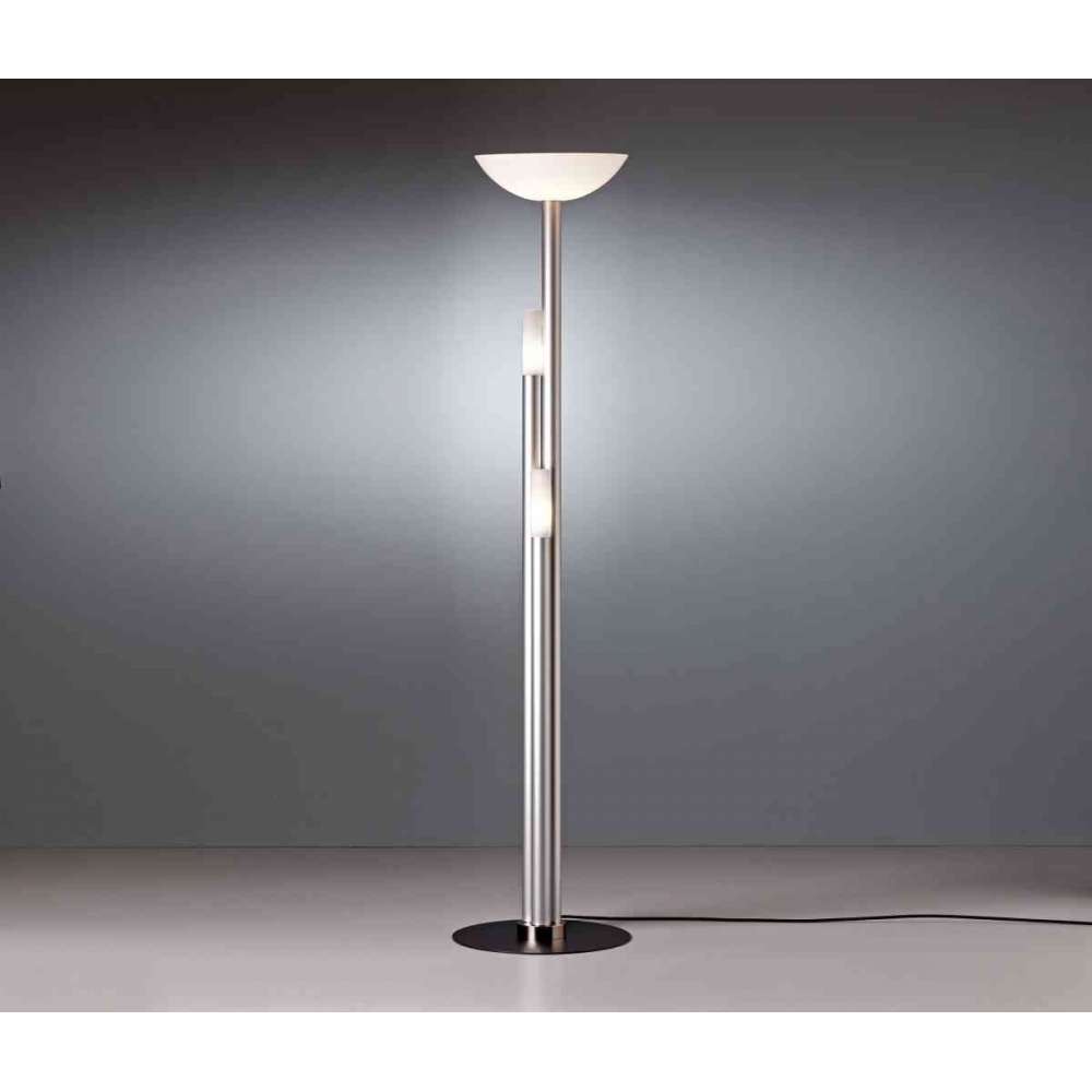 Lampa jest prostą formą rzeźbiarską ożywioną zmianami materiału. Czarna lakierowana podstawa podtrzymuje trzy lakierowane mosiężne rurki o różnej wysokości, zwieńczone formami z matowego szkła. 100 W, 2x E 14, maks. świeca 25 W