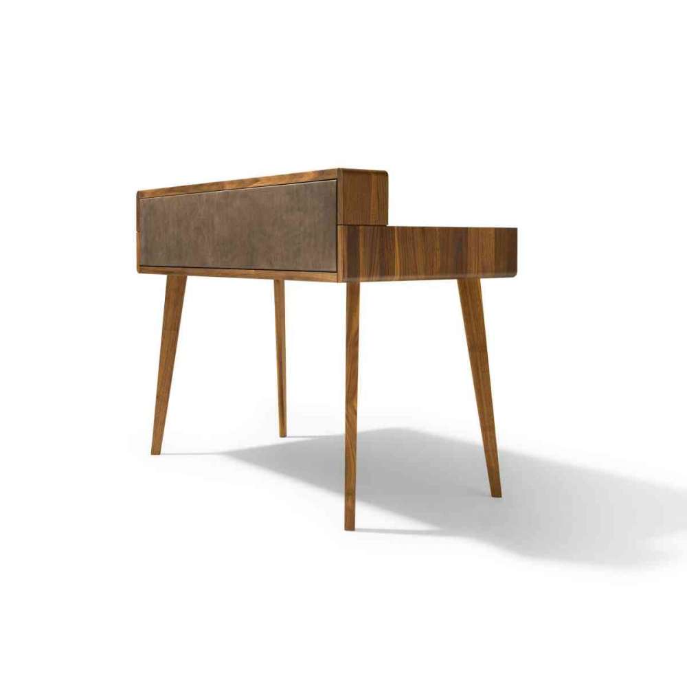 Prawdziwie wszechstronny. Wolnostojący, zawieszony lub wsparty na dwóch nogach: sol jest idealnym towarzyszem we wszystkich pomieszczeniach mieszkalnych, o cudownie przejrzystym wzornictwie. Dwie połączone ze sobą skorupy – jedna wykonana z drewna, druga pokryta skórą – tworzą sprytny podstawowy pomysł. powierzchnię do pisania sol można wyciągnąć i zatrzasnąć w dwóch pozycjach końcowych. W stanie rozłożonym oferuje wystarczająco dużo miejsca, aby wygodnie usiąść, zapewniając jednocześnie wygodny dostęp do przemyślanego wnętrza: gniazdo zasilania ze złączem USB oraz innowacyjna technologia ładowania Qi do bezprzewodowego ładowania smartfonów i tabletów zapewniają zasilanie różnym urządzeniom. Pudełka na przybory, frezowane półki na długopisy i ukryta szuflada ułatwiają organizację. Opcjonalna przystawka ze ściemnianym oświetleniem LED zapewnia pełne oświetlenie, jakiego potrzebujesz. A tuba Sricktex zwija luźne kable.