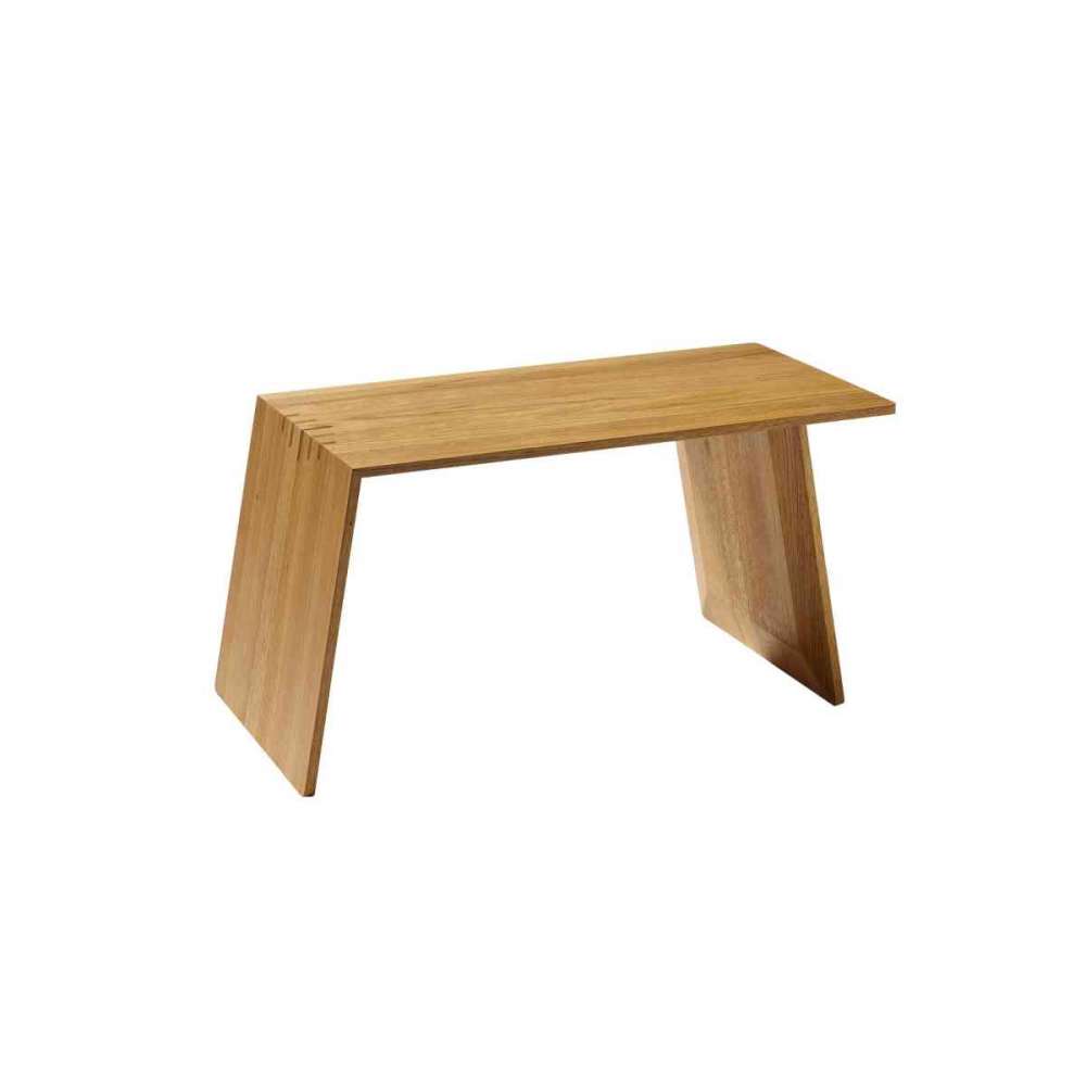 Jego podstawowy kształt tworzą trzy odrębne powierzchnie, a skośne panele boczne zapewniają stabilność stołu. Ręcznie wykonane połączenie wpustowe pozwala przesuwać panel boczny do iz pozycji biurkowej, podkreślając jednocześnie piękno kunsztu TEAM 7. Swój delikatny i dynamiczny urok sidekick zawdzięcza delikatnemu wyglądowi drewnianych paneli użytych do jego wykonania. Zmysłowy w swoim materiale i innowacyjny w swojej użyteczności, sidekick jest nastawiony na codzienne użytkowanie i wykazuje wysoki poziom funkcjonalności. Dostępny w sześciu różnych rodzajach drewna.