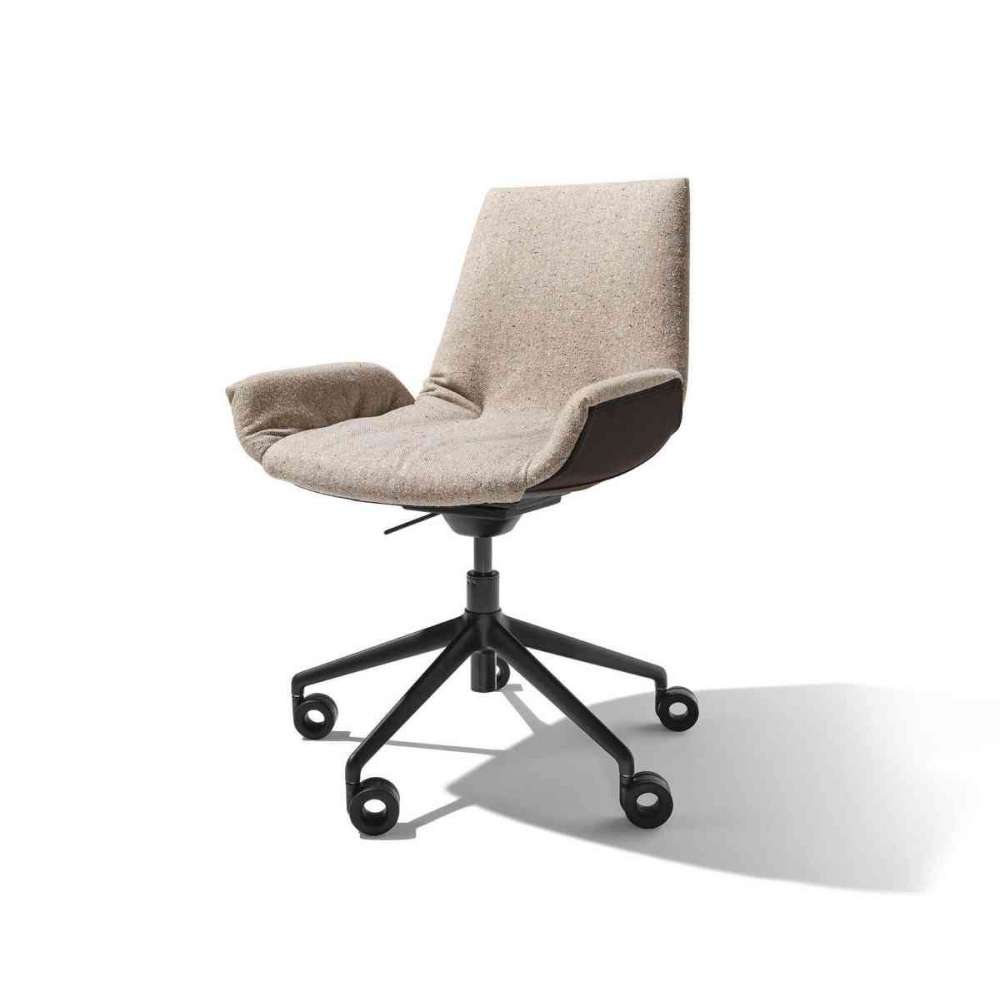 Jako krzesło obrotowe, stylowa rodzina krzeseł lui podbije Twoje domowe biuro. Podobnie jak w jadalni, tutaj wszyscy pokochają lui, lui plus i grand lui dzięki ich swobodnemu wyglądowi z gładko rozciągniętymi powierzchniami zewnętrznymi i charakterystycznymi, miękkimi fałdami po wewnętrznej stronie. Trójwymiarowa skorupa siedziska gwarantuje najwyższy komfort. Matowa czarna aluminiowa podstawa obrotowa z designerskimi kółkami odpowiednimi do twardych i miękkich wykładzin podłogowych może być obracana o 360°, dzięki czemu biurowe krzesło obrotowe jest niezwykle mobilne. Jego mechanizm ruchu 3D umożliwia aktywne, przyjazne dla pleców siedzenie, zapewniając zawsze przyjemne wrażenia z siedzenia. Wysokość siedziska można regulować bezstopniowo w zakresie od 45 do 56 cm i można ją idealnie dopasować do wzrostu. A kiedy potrzebujesz przerwy? Po prostu wtocz się do jadalni! Tam umiejętnie komponuje się ze swoim rodzeństwem z rodziny krzeseł lui.