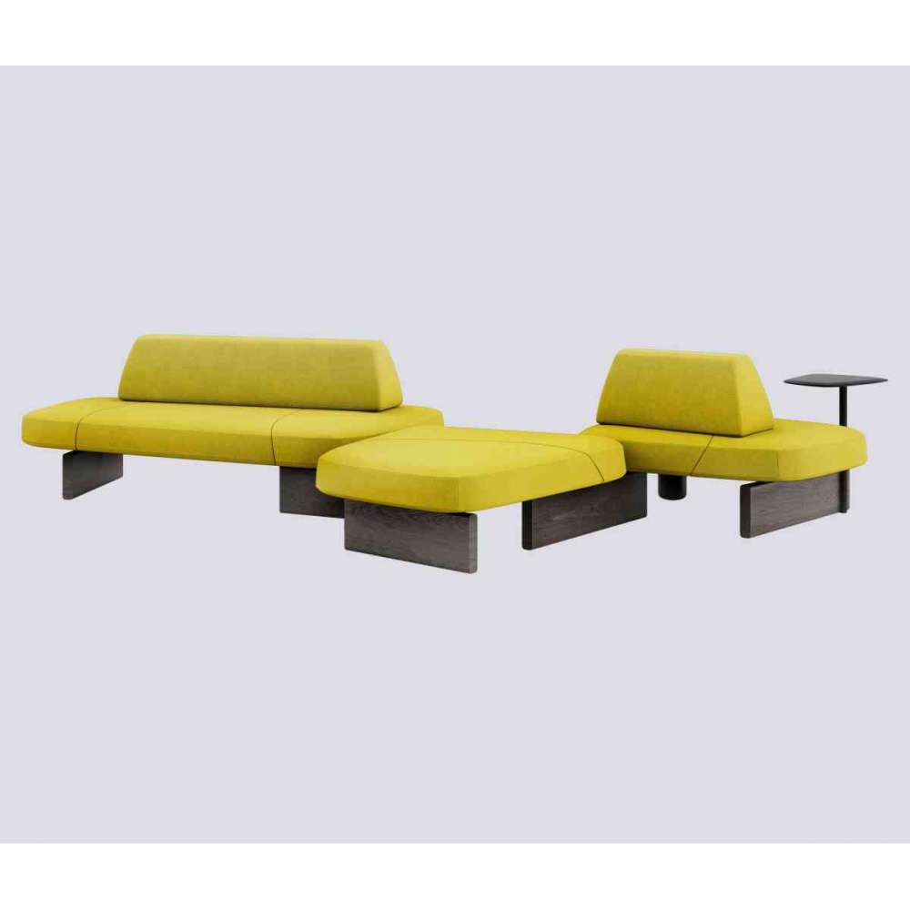 Na początku były to skały, ukształtowane przez wiatr i wodę, żyłkowane kamienie, doskonale nałożone na siebie lub połączone ze sobą przez naturę. Potem, kiedy organiczne kształty inspirowały formy artystyczne, widzieliśmy monolity, takie jak te autorstwa Barbary Hepworth i abstrakcyjne obrazy Serge'a Poliakoffa. Z tej samej linii wywodzi się nowy projekt Pearsona Lloyda, modułowy system inspirowany naturalnymi kształtami i artystycznymi aluzjami, przeznaczony do aranżacji zbiorowych. Ischia składa się z wielu elementów, które można dowolnie łączyć: siedzenia mogą być pojedyncze lub podwójne, z oparciem lub bez. System oferuje również możliwość dodania stołu lub parawanu z plecionej trzciny, aby oddzielić i ukryć dany obszar. Komponenty mają zasadniczy charakter, z miękkimi kształtami i ukośnymi liniami, zrównoważonymi mocnymi wykończeniami drewnianych lub marmurowych podstaw, które je łączą.