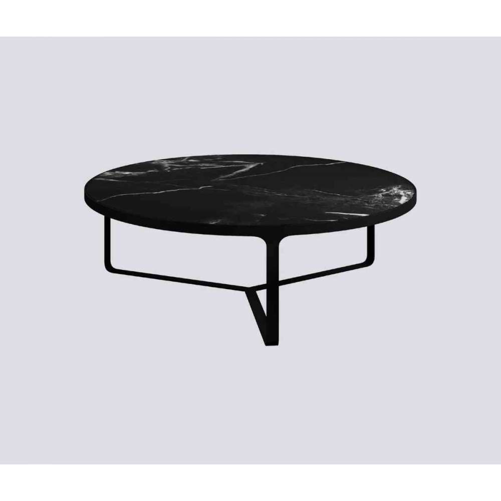 Projekt stolika kawowego Gordon Guillaumier's Cage koncentruje się na wykorzystaniu metalowych pasków, które zostały wytłoczone z lekkim promieniem gięcia, aby złagodzić geometrię całości i dostosować się do zaokrąglonych kształtów krzeseł i sof.