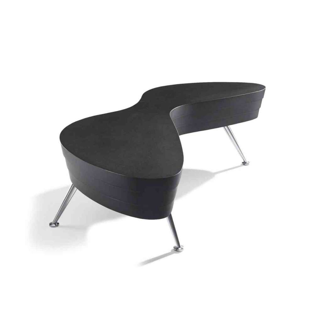 Mojo Platform to seria stołów o wysokim połysku. Połączenie smukłych aluminiowych nóg i unikalnego blatu ze schodkowymi bokami wizualnie podnosi środek ciężkości.