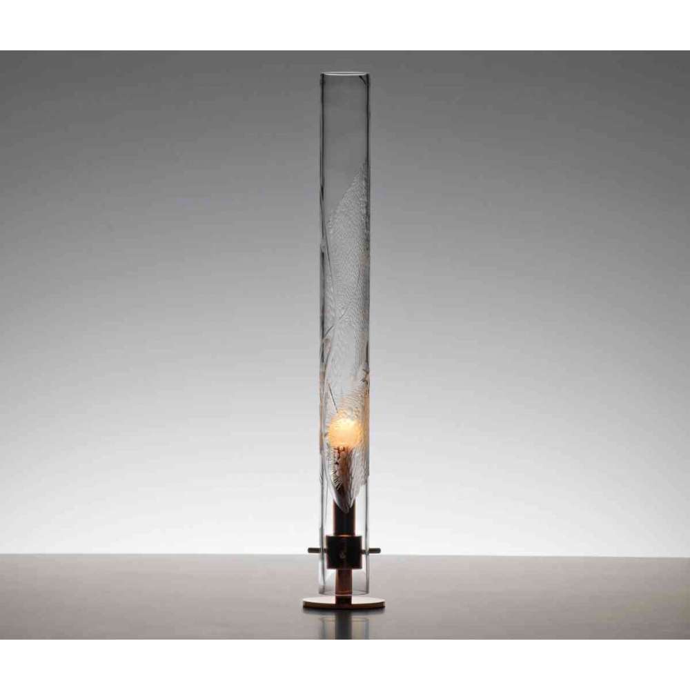 To, co na pierwszy rzut oka wygląda jak linie, okazuje się być zbiorem najlepszych sznurków pereł umieszczonych pionowo na szklanym korpusie. Filigranowe i delikatne, małe światełko jest zamknięte w każdym wygrawerowanym zagłębieniu. Czy te wgłębienia to ślady, które toczący się kamień pozostawia na piasku – czy tylko wzór? Mówiąc metaforycznie, „Steinn” oznacza również „zamknięty” lub „sekret”. Być może Heather też to miała na myśli.