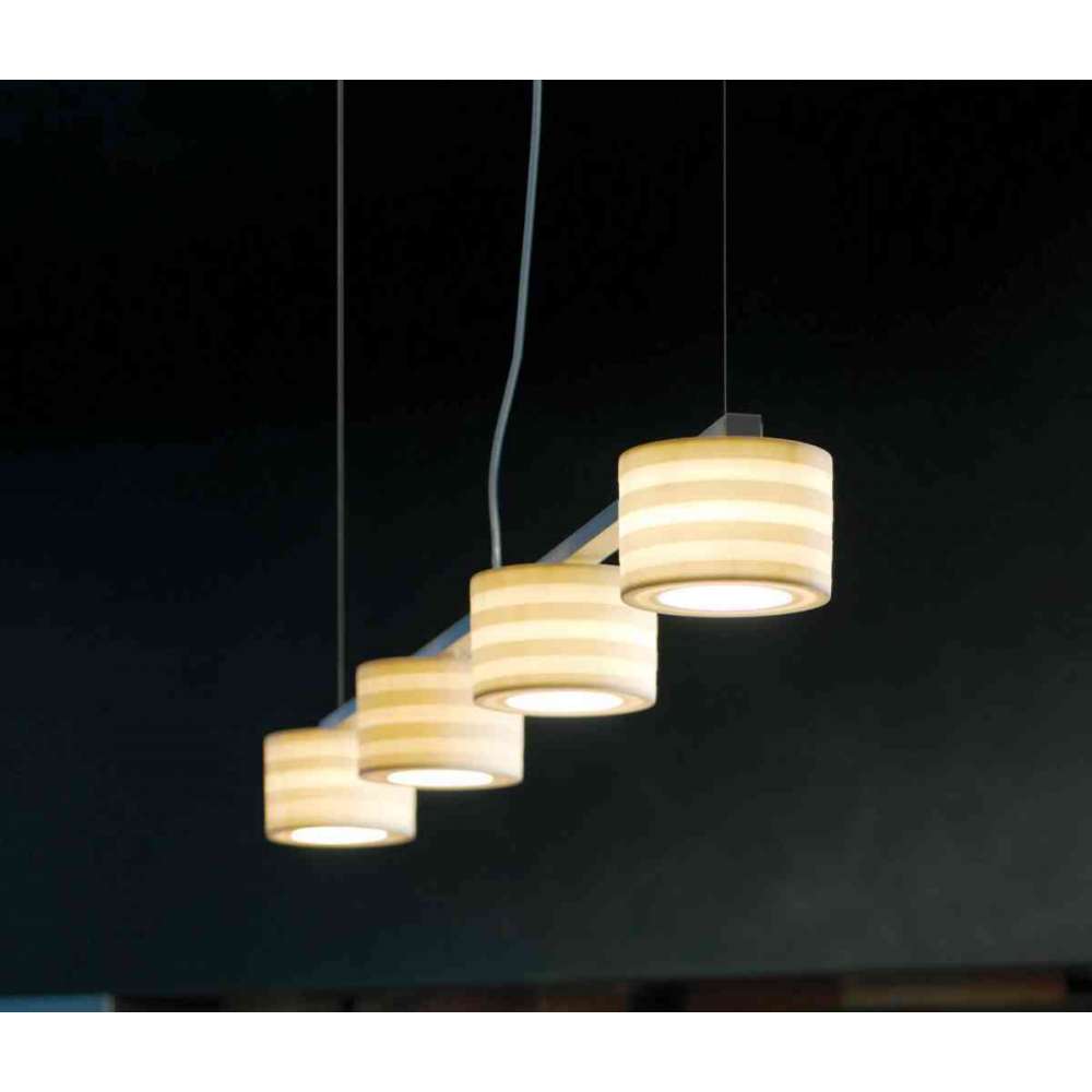Es gibt sie dreiflammig und vierflammig, das heißt, mit drei Schirmen in einer Länge von 90 cm, empfohlen für Tische bis ca. 1,60m. Bestückt mit vier der filigranen Schirmen und einer Länge von 1,20 m passt sie perfekt über einen Tisch bis ca. 2m. Durch die Porzellanschirme fällt weiches Licht auf Tisch und Speisen. Warmweißes LED-Licht zaubert eine angenehme Stimmung.