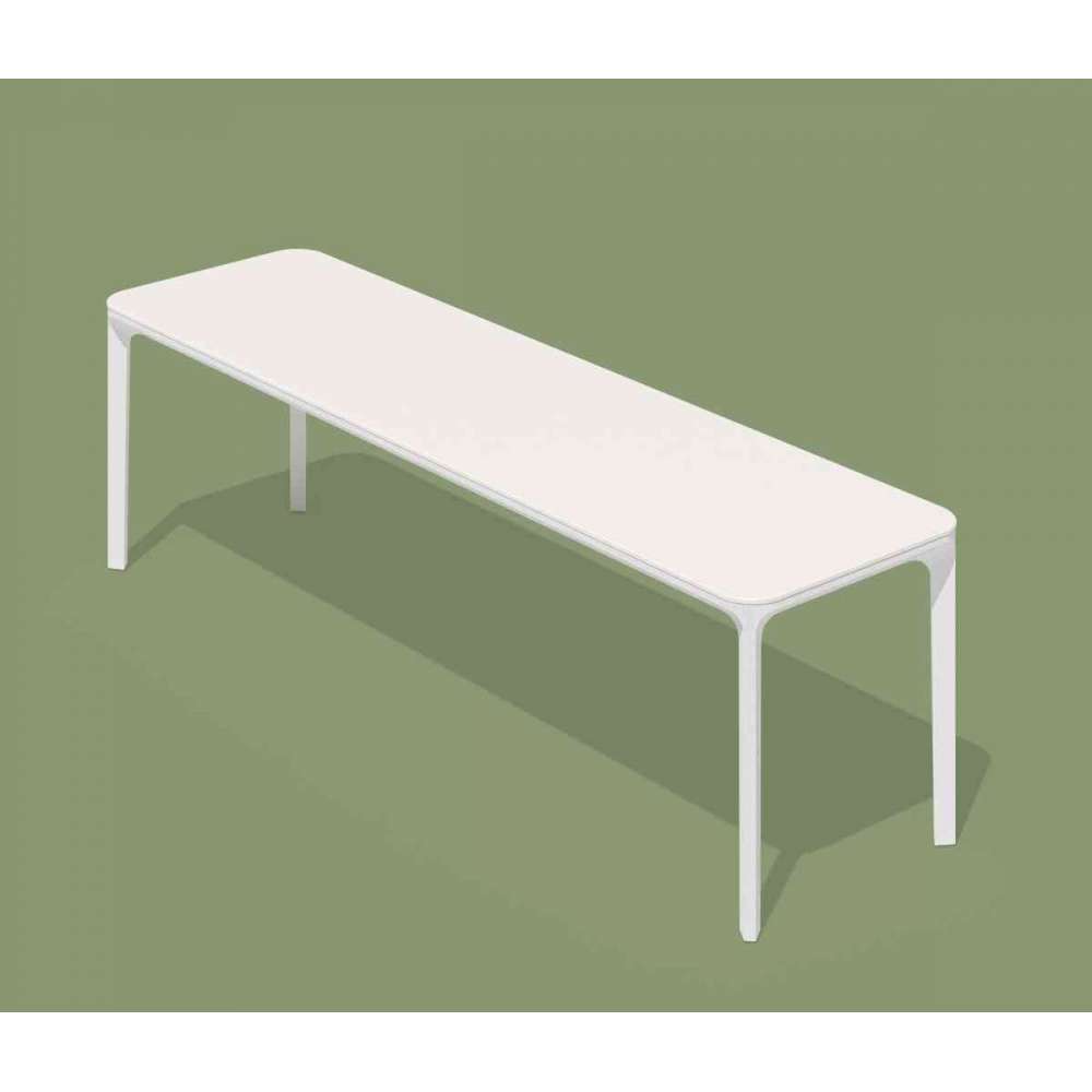 Ławka z aluminiowymi nogami i konstrukcją, różne wykończenia. Ceramiczne siedzisko dostępne w różnych