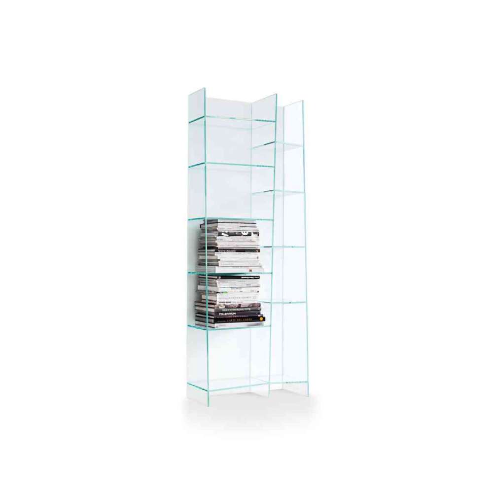 Delphi to szklany modułowy regał, który tworzy falisty efekt „fali” dzięki półkom w kształcie trapezu o różnych rozmiarach. Wersja z przydymionym szkłem ma wyrafinowany urok, podczas gdy wykończenie ekstrajasne wygląda wyjątkowo lekko i rozświetla pomieszczenie.