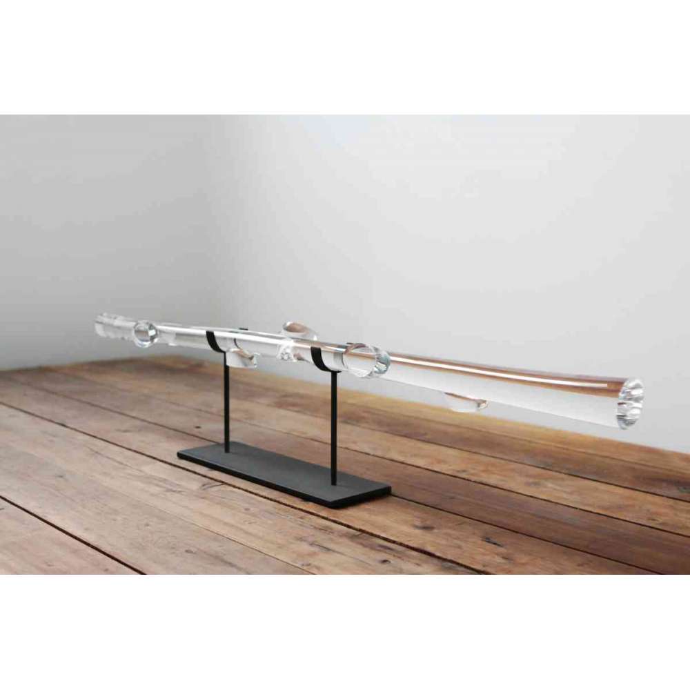 Korzeń to kawał litego, przezroczystego szkła, którego długość wyznaczają przypadkowe miejsca, w których szkło jest dodawane organicznie, a następnie cięte i prawie całkowicie mielone, pozostawiając wysoce wypolerowane i płaskie cylindryczne kształty. Przywołujący kształty natury, ale także fascynujący wyraz szkła i umiejętności stojące za jego ręcznym pochodzeniem. Obejmuje stojak stołowy z ciemnej oksydowanej stali do ekspozycji.
