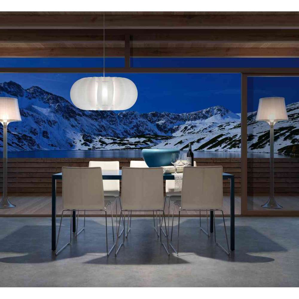 Stół smukły, anodowany na srebrno, aluminiowa konstrukcja lakierowana na kolor czarny, biały lub RAL. Blat z płyty własnej, lakieru, forniru, szkła, kompaktu, marmuru lub litego drewna.