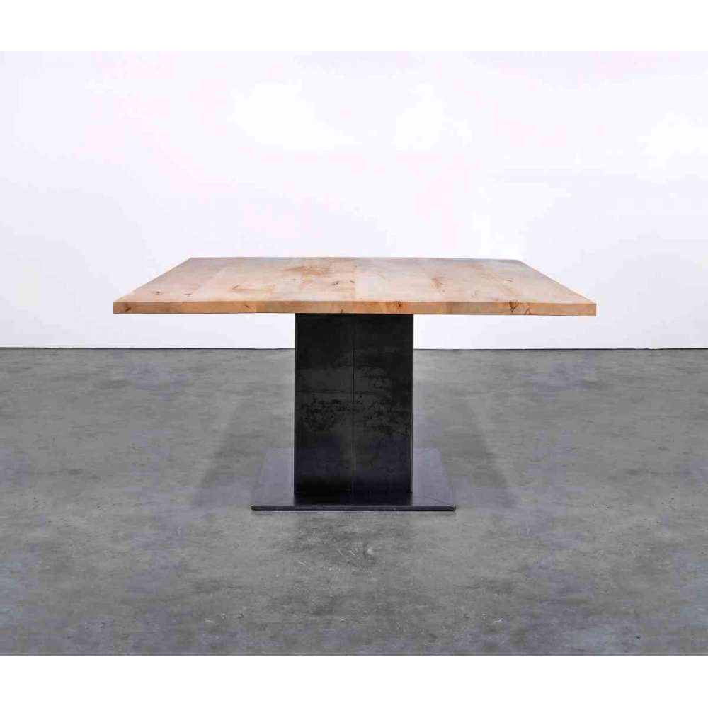 Blat wykonany jest z litego, klejonego drewna o grubości płyciny 42 mm. Powierzchnia jest olejowana, z wyjątkiem wyboru drewna klonowego. Kwadratowa pojedyncza noga wykonana jest z walcowanej stali w kolorze antracytowym z olejowaną powierzchnią. Dostępne są różne gatunki drewna.