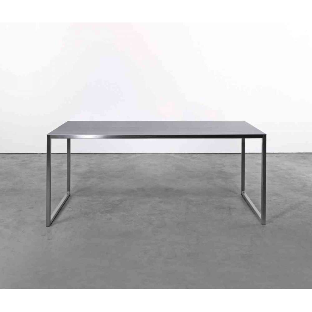Powierzchnia stołu wykonana jest z anodyzowanego aluminium. Rama wykonana jest z polerowanej kwadratowej rury ze stali nierdzewnej.