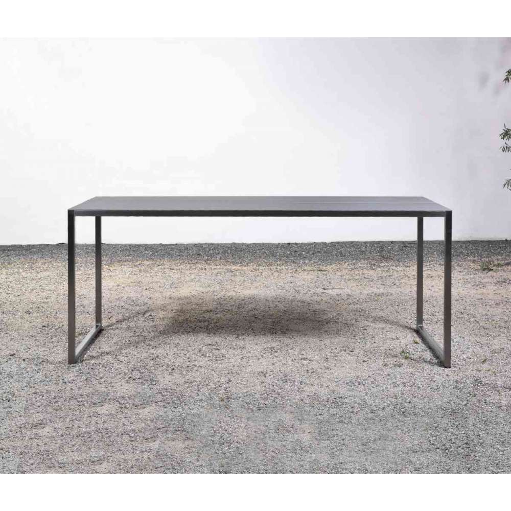 Powierzchnia stołu wykonana jest z anodyzowanego aluminium. Rama wykonana jest z polerowanej kwadratowej rury ze stali nierdzewnej.