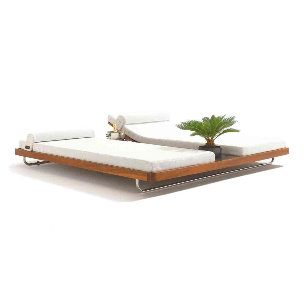 Czyste, nowoczesne linie smukłej mahoniowej ramy z twardego drewna na wyrafinowanej podstawie ze stali nierdzewnej 316 stanowią scenerię dla osób poszukujących relaksu. Dwa niezależne regulowane łóżka - wraz z luksusowym materacem i poduszkami z wyboru luksusowych tkanin odpornych na warunki pogodowe - są oddzielone centralnym stołem z marmurowym blatem, do wyboru z czystego białego marmuru Carrara lub czarnego marmuru Marquina. Dostępne są również różne układy, w tym donica, uchwyt na wiaderko do lodu lub otwór na maszt pod parasolem, aby mieć wszystko pod ręką. Możliwość układania w stos: Nie