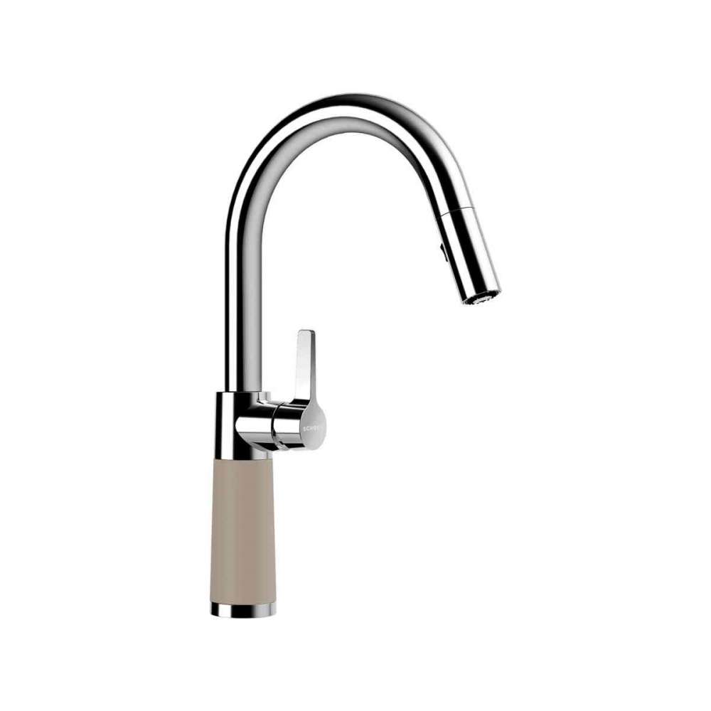 Bateria SCHOCK SC-520 oferuje idealne dopasowanie kolorów do zlewu, ma ergonomiczny kształt i może przełączać się między funkcją zwykłego strumienia i natrysku.